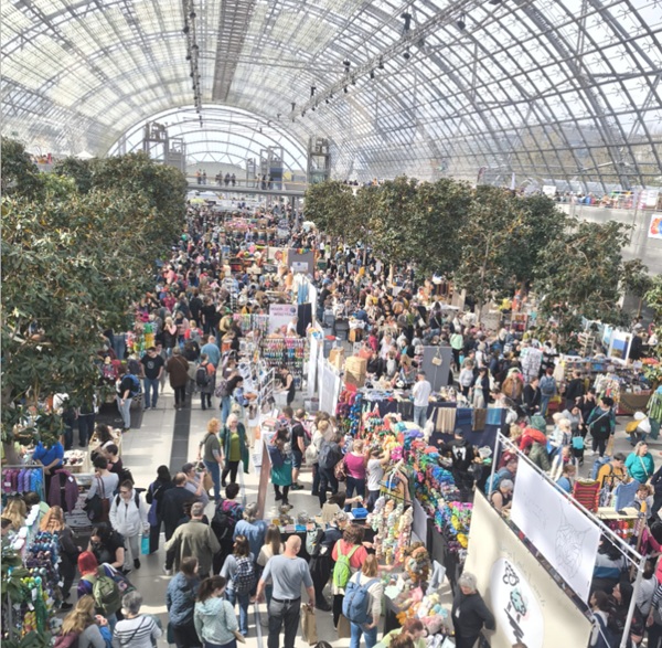 Ach ja, das Leipziger Wollefest war schon ein Erlebnis, was hauptsächlich an den Leuten lag, die ich dort getroffen habe. Wir saßen in gemütlicher Runde, strickten, schwatzten, betrachteten die Einkäufe der anderen. Solange die Sonne auf das Glasdach schien, war es angenehm warm. Als sich später Wolken über dem Messegelände zusammengezogen hatten, wurde es ungemütlich. Auf dem Heimweg regnete es. Da war es wirklich Zeit zu gehen.