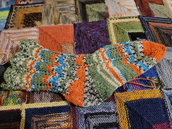 Punkt 16. die Aprilsocken habe ich angestrickt. Verstrickt gefällt mir das Garn viel besser, als auf dem Knäuel.